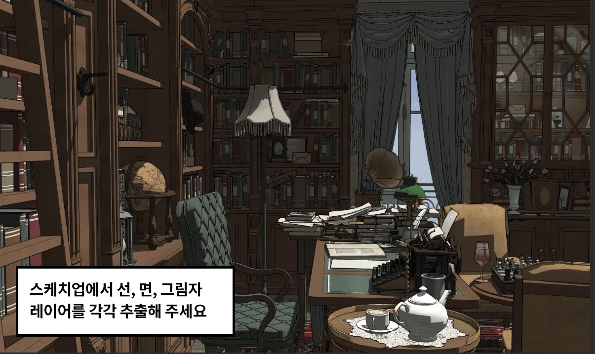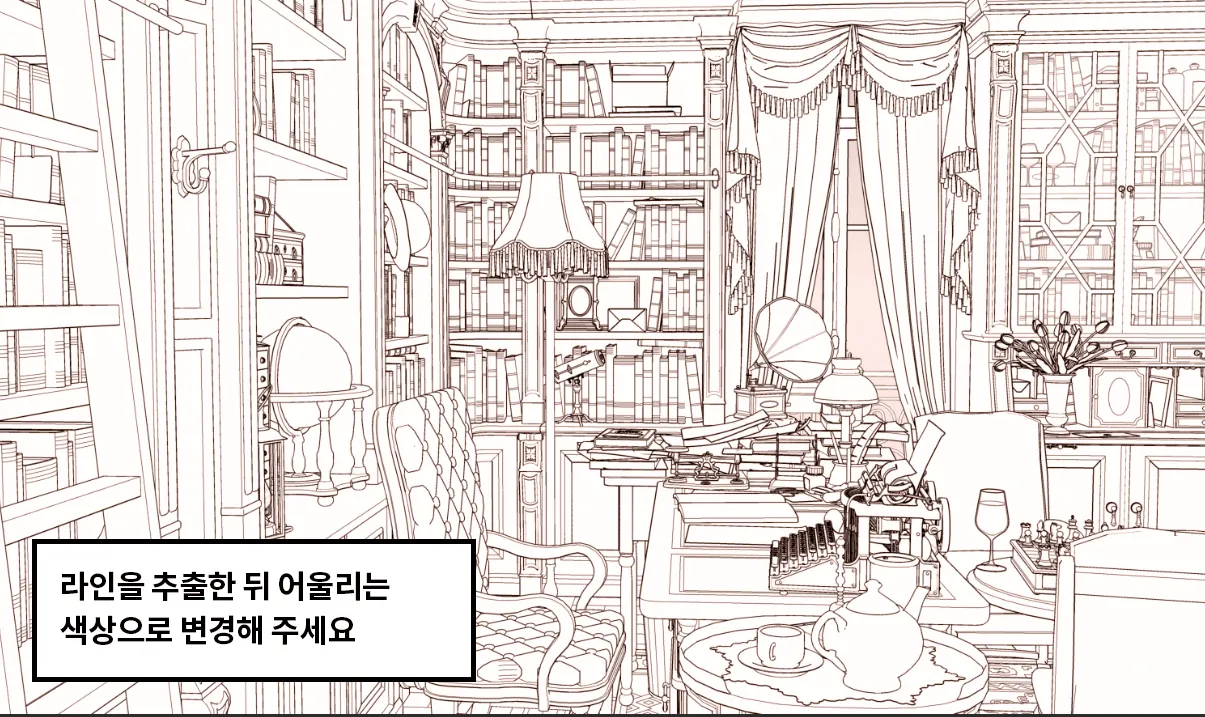 2. 라인(선)을 추출한 뒤, 어울리는 색상으로 변경해 주세요. 붉은 계열의 색상을 추천!