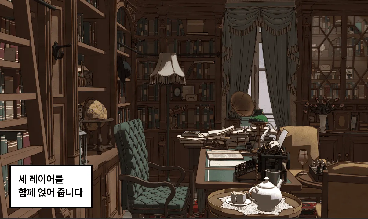 4. 포토샵에서 세 레이어를 함께 얹어 줍니다.