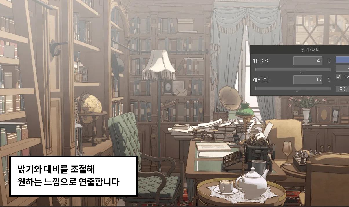 9. 전체 레이어를 복사 - 복사된 레이어를 병합 - 병합한 레이어의 밝기와 대비를 취향 껏 조절해 원하는 느낌으로 연출해 보세요.
