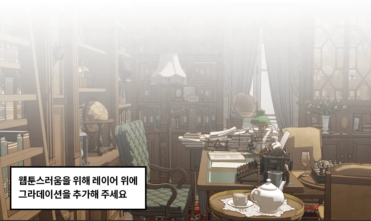 7. 웹툰 느낌을 살리기 위해 레이어를 하나 추가 후, 흰색으로 그라데이션을 깔아줍니다.
