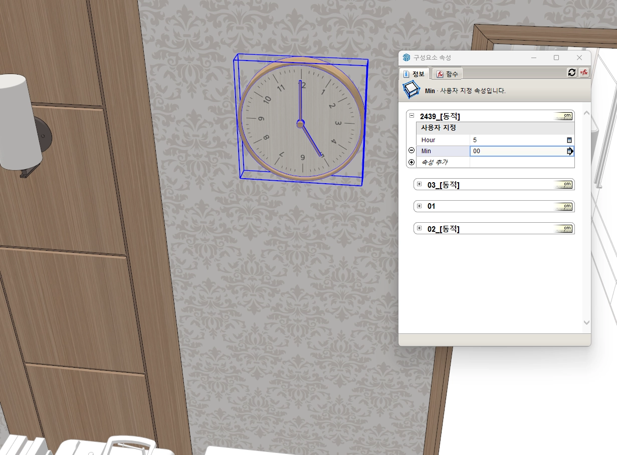 이때 뜨는 구성요소 속성창에서 시침과 분침을 조정할 수 있어요.
